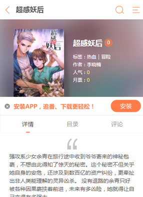 超感妖后 2025-06-14 13:20韩国漫画 开始阅读 微信阅读 简介:漫画《超感妖后》讲述了强攻系少女余青在旅行途中收到爷爷寄来的神秘包裹,不想由此得知了惊天的秘密。这个秘密不但关乎她自身的安危,还涉及到数百亿的资产纠纷,更牵扯出非人类能理解的灵异凶杀。没有退路的余青只好被各种因果裹挟着前进,未来有多凶险,她就得让自己变得有多强大…… 转载原创漫画请注明,转载自:漫画天堂-超感妖后(https://mhtt.cc/hgmh/3942.html)