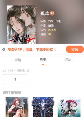 简介: 《孤鸿》漫画简述:失忆的名门正派沈遗秋再遇邪教门主严洛烽,二人因立场不同而相互对立,可这对立却让沈遗秋渐渐找回了失去的记忆,知道了江湖正邪的假面,以及太平盛世粉饰之下的残酷真想.....